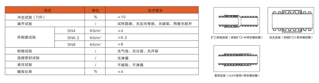 較較(HDPE)具有優(yōu)良的化學穩(wěn)定性,不易老化及耐環(huán)境應(yīng)力開裂的性能。由其為原材料生產(chǎn)出來的HDPE雙波壁紋管屬于柔性管。其主要特征如下: