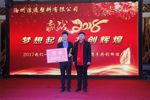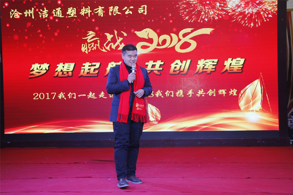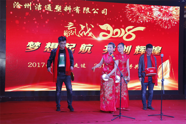 冬去春回又一載,似水流年旺年來。2018年2月12日下午,滄州潔通塑料有限公司2017年年會(huì)在正達(dá)大西洋酒店隆重舉行。潔通公司全體員工歡聚一堂,在熱情、溫馨、歡樂的氣氛中回首2017年取得的成績,共同迎接2018年的到來。
